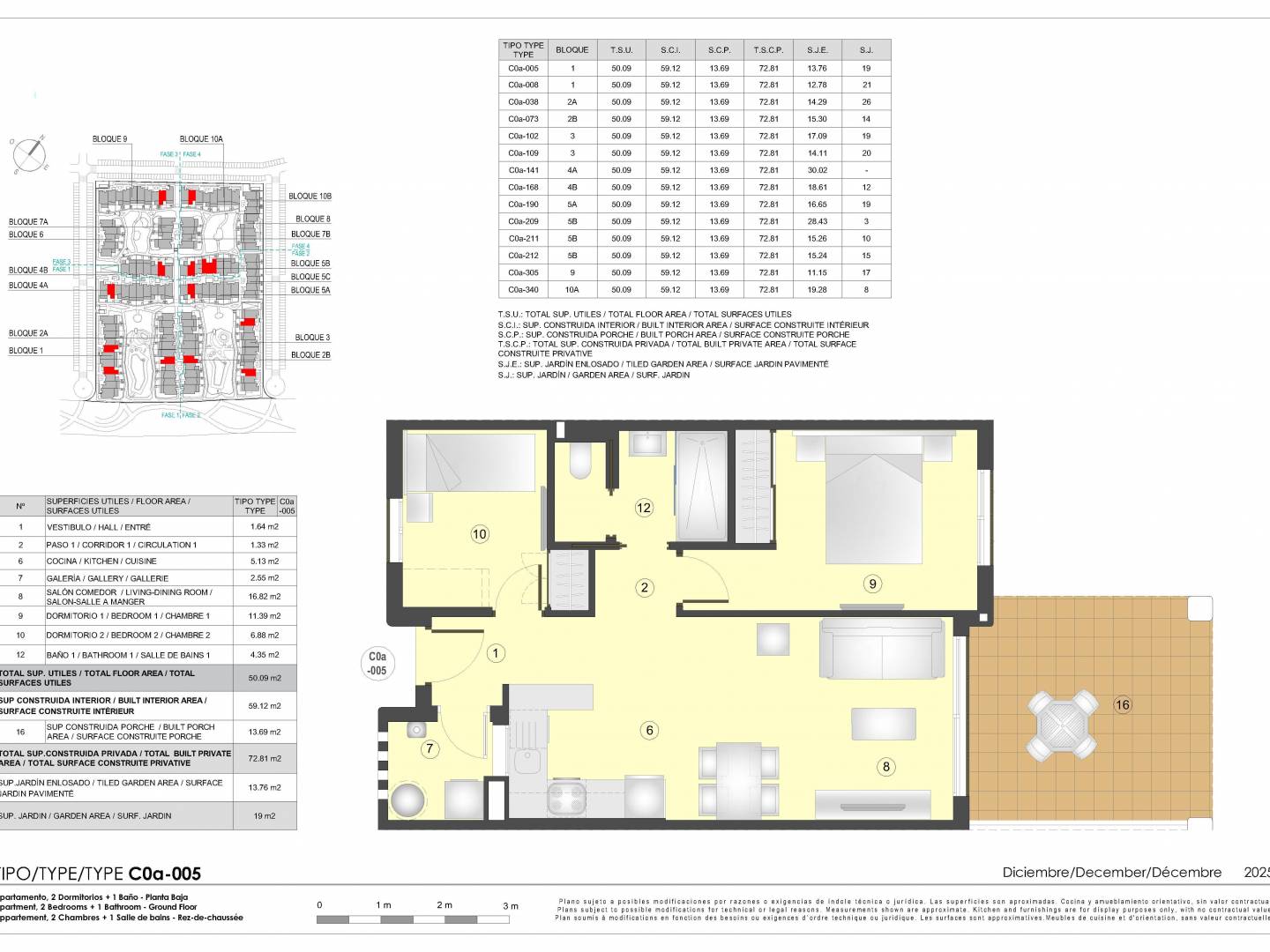 El interior de las viviendas está cuidadosamente diseñado para ofrecer confort y estilo. Los suelos de gres porcelánico aportan un toque moderno y son fáciles de mantener. Todas las propiedades están equipadas con armarios empotrados, optimizando el espacio de almacenamiento. La preinstalación de aire acondicionado asegura un ambiente agradable durante todo el año. Las opciones de distribución incluyen viviendas de 1, 2 y 3 dormitorios, con 1 o 2 baños, adaptándose a diferentes necesidades familiares.