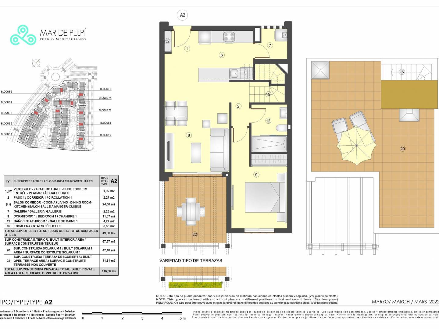 Los exteriores de este residencial en Pulpí están diseñados para ofrecer un entorno agradable y funcional. Las viviendas cuentan con terrazas y jardines privados, proporcionando un espacio al aire libre perfecto para disfrutar del clima mediterráneo. Además, algunas tipologías incluyen solárium, ideal para aquellos que desean un espacio adicional para relajarse o socializar. La cercanía al mar, a solo 1 km, permite disfrutar de la brisa marina y de vistas espectaculares desde muchas de las propiedades. Este entorno exterior está pensado para complementar el estilo de vida relajado y cómodo que ofrece la ubicación en Pulpí.