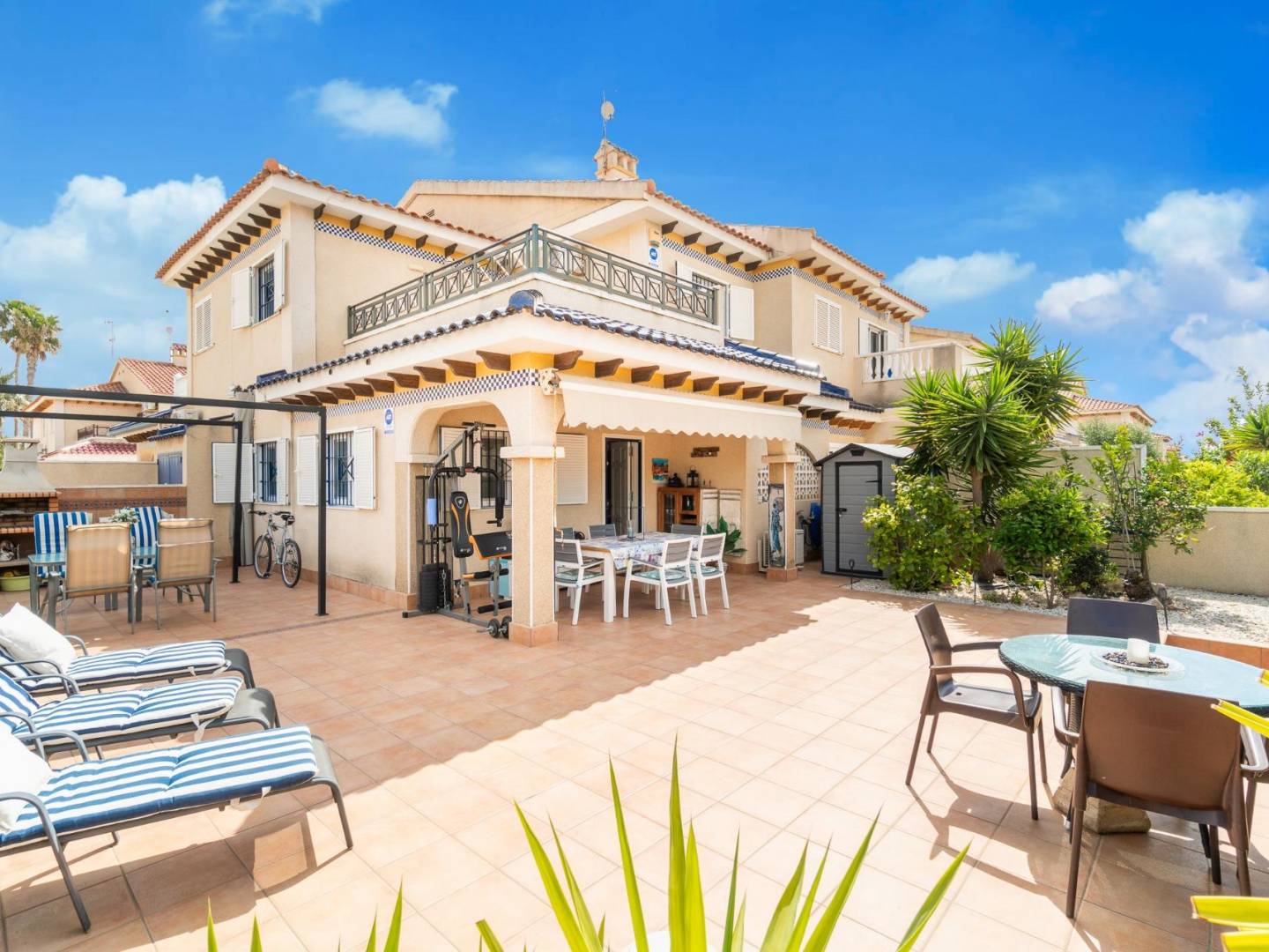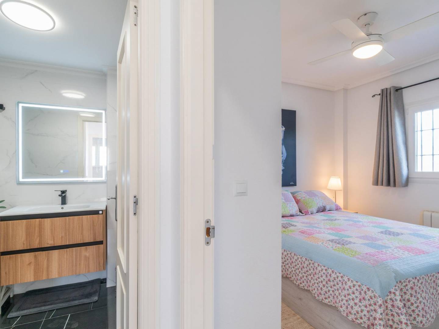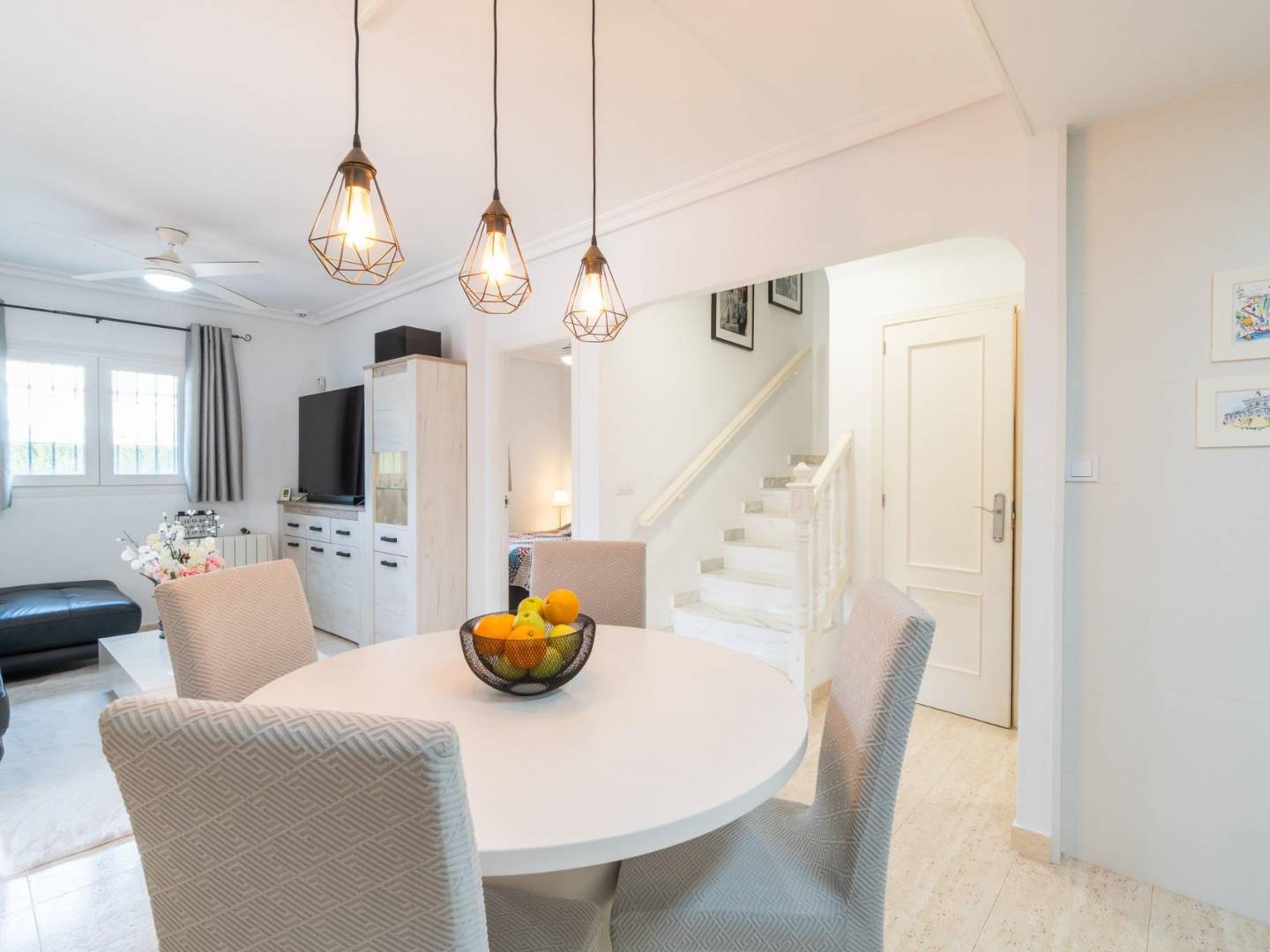 Descubra esta luminosa propiedad tipo quad en una de las urbanizaciones más demandadas de Orihuela Costa, a tan solo 1500 metros del mar. Esta elegante vivienda ofrece 89 m² construidos distribuidos de manera funcional en 3 dormitorios y 2 baños completos, ideal tanto como residencia habitual como inversión vacacional de alto nivel. Su privilegiada orientación oeste permite disfrutar de una magnífica luz natural durante toda la tarde, especialmente desde su espectacular terraza privada con vistas despejadas, perfecta para momentos de relax y ocio al aire libre. En la planta baja, encontramos un amplio y luminoso salón-comedor, una moderna cocina abierta con acceso a lavadero y despensa, además de un dormitorio y un baño reformado. La planta superior alberga dos dormitorios adicionales, otro baño reformado y una acogedora terraza soleada. La vivienda se vende totalmente amueblada, lista para entrar a vivir sin necesidad de reformas. La urbanización ofrece cuidadas zonas verdes y una impresionante piscina comunitaria, creando un entorno perfecto para el disfrute familiar. Su excelente ubicación proporciona acceso inmediato a servicios, colegios, transporte público y al reconocido centro comercial La Zenia Boulevard. Esta propiedad representa una oportunidad única de adquirir un hogar que combina tranquilidad, confort y proximidad al mar en plena Costa Blanca.