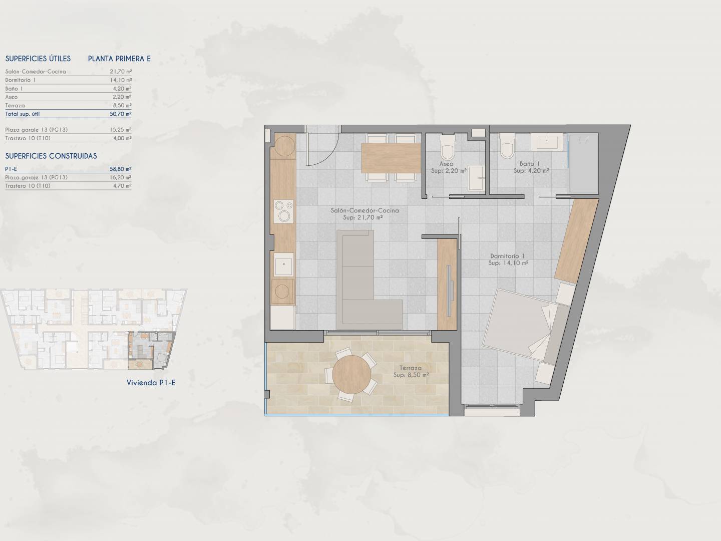 El interior de estas viviendas destaca por su diseño moderno y funcional. Los apartamentos, plantas bajas y áticos ofrecen opciones de 1, 2 o 3 dormitorios, adaptándose a diferentes necesidades familiares. Los baños, disponibles en configuraciones de 1 o 2, están equipados con acabados de alta calidad. La cocina incluye electrodomésticos modernos, facilitando el día a día. El suelo de gres porcelánico aporta un toque de elegancia y durabilidad, mientras que el aire acondicionado garantiza el confort térmico durante todo el año. Los armarios empotrados ofrecen soluciones de almacenamiento eficientes, y el videoportero añade un extra de seguridad y comodidad.