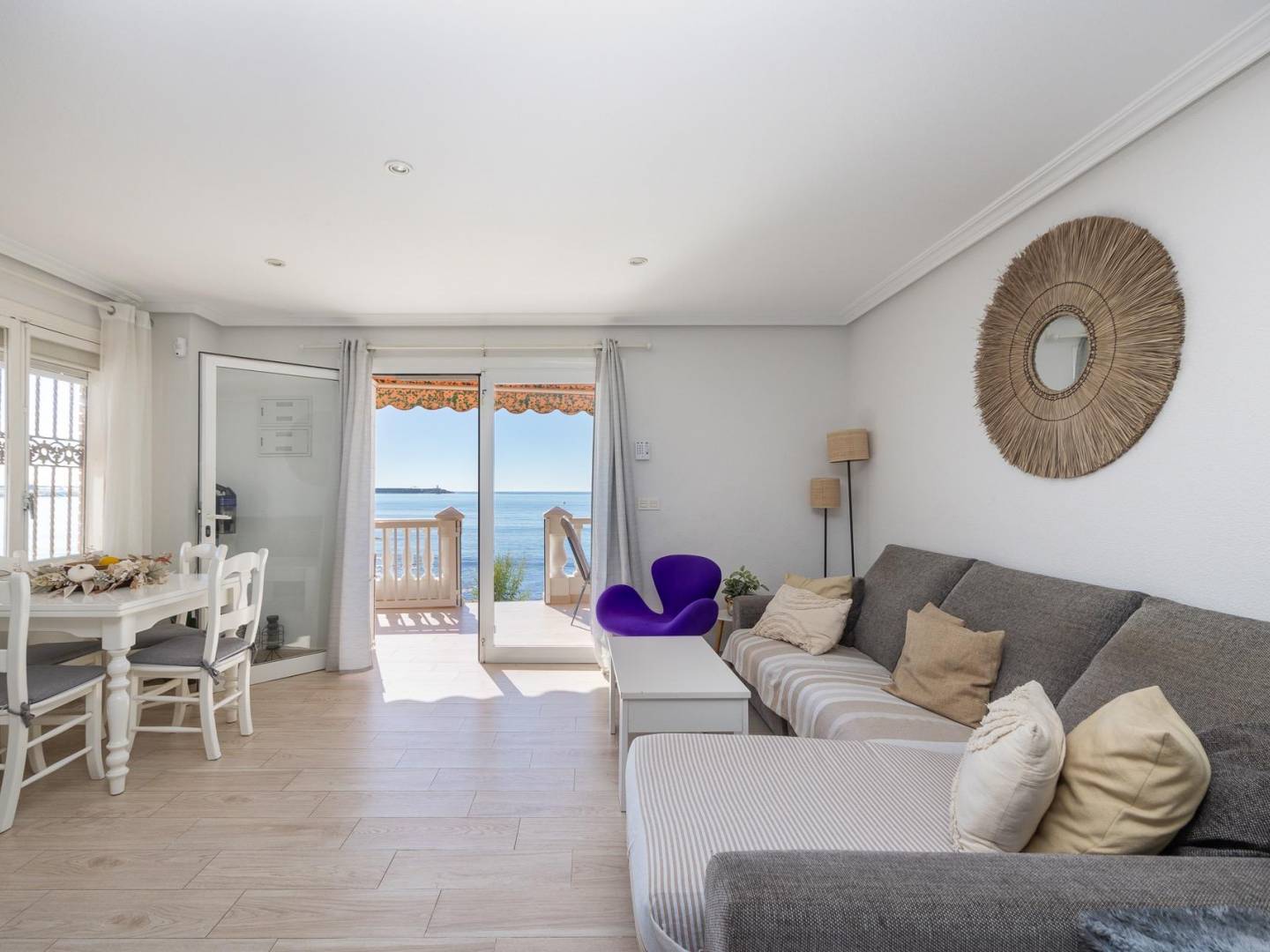 Descubra este maravilloso apartamento en planta baja en primera línea de playa, situado a tan solo 50 metros de la Playa de los Náufragos, una de las ubicaciones más privilegiadas de la Costa Blanca. Esta elegante propiedad ofrece una experiencia única gracias a sus impresionantes vistas al mar desde el salón y la cocina, creando una sensación incomparable de conexión con el Mediterráneo. La vivienda dispone de entrada independiente, lo que aporta privacidad y comodidad, además de un encantador porche/terraza privada, ideal para disfrutar del clima soleado durante todo el año. Su distribución incluye un amplio salón-comedor, una moderna cocina abierta, tres dormitorios dobles y un baño completo, todos los espacios exteriores que maximizan la luz natural y las vistas. Ubicado en una zona en pleno crecimiento, el inmueble cuenta con proximidad a supermercados, restaurantes y servicios, así como excelente conexión a través de la N-332, permitiendo un acceso rápido a áreas exclusivas como Punta Prima y La Zenia. Además, se encuentra a solo 5 minutos de Torrevieja, lo que incrementa aún más su atractivo. Una oportunidad única para quienes buscan una propiedad de nivel junto al mar, ya sea como residencia habitual, inversión o segunda vivienda.