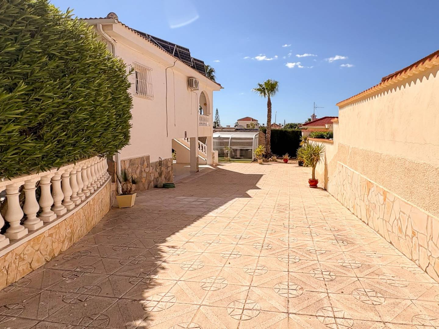 Uno de los elementos más singulares de esta propiedad es su invernadero con vistas abiertas, un rincón lleno de encanto bañado por luz natural que aporta carácter y exclusividad a la vivienda. En el exterior, la villa dispone de una piscina privada que se integra perfectamente en el entorno, acompañada de zonas de descanso que invitan a disfrutar del clima mediterráneo en total intimidad. Además, cuenta con una elegante sala de jacuzzi que eleva la experiencia de bienestar a otro nivel, así como parking privado dentro de la parcela.